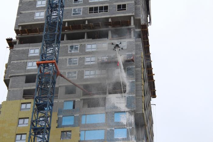 - 2-й этап испытаний проходил 01.10.2025 г. в г. Екатеринбург на стройплощадке высотного здания по адресу ул. Малышева, 145, где на высоте 18 этажа был ликвидирован предполагаемый очаг возгорания.